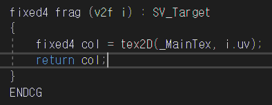 모바일 환경이 아닌경우에는 크게 중요치않을 수 있지만, 모바일 환경이라면 이 부분 또한 잘 챙겨줄 필요가 있다.float , half, fixed 는 각자 다른 정확도, 즉 자릿수를 가지고 있다. float은 32비트, half는 16비트, fixed는 11비트의 정보량을 가진다. 당연히 굳이 큰 정밀도, 혹은 큰 수치가 필요하지 않은 곳에 힘을 쓸 필요는 없으므로, 결과값이 충분히 기대한 만큼 나온다면, 가능한 한 낮은 단위를 사용하는 것이 유리하다. float: 모든 숫자 / 월드 스페이스 포지션이나 복잡한 연산에 사용하자.half: -60.000 ~ + 60.000 / 수치가 크지않은 벡터, 오브젝트 스페이스 포지션, UV 등에 사용하자.fixed: -2.0 ~ +2.0 / 단순한 컬러, 각종 수치 등에 사용하자.유니티 도큐먼트에서는 일반적으로 텍스쳐 및 포지션에 관련된 수치가 아닌 경우 half를 사용할것을 권고하고있다. half에서 충분히 예상한 결과가 나오지 않을 경우 float을 사용하면 된다.